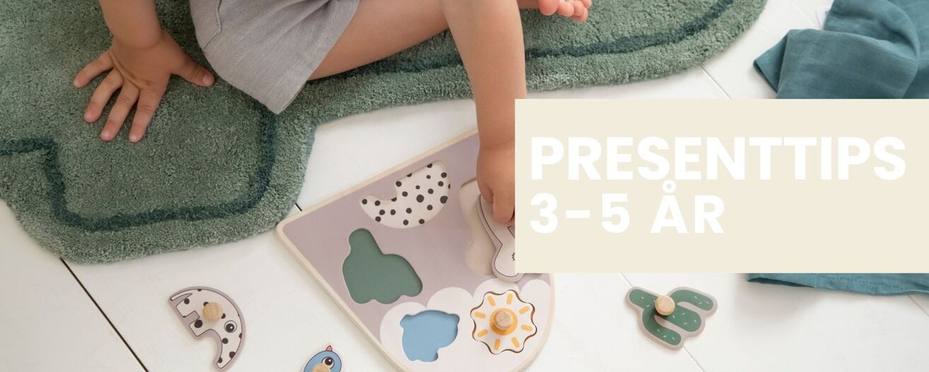Barn i åldern 3-5 år börjar vanligtvis visa nya intresse och en ökad utveckling som går fort i denna ålder! Deras finmotorik förbättras markant och många barn i denna ålder uppskattar aktiviteter som pussel och bygge. En annan populär lek är rollspel där dem får använda sin fantasi och leka "vuxen" , som att vara en kock eller bagare köket, frisör eller veterinär. Här har vi samlat ett noga utvalt urval av våra bästa presentidéer för barn upp till fem år.