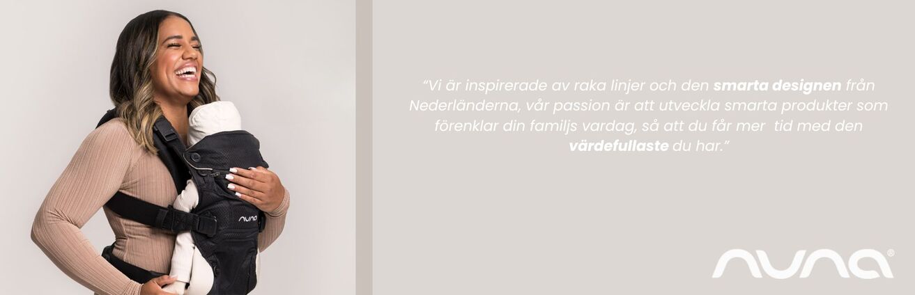 De moderna och innovativa barnvagnarna från Nuna är designade för att passa in i din livsstil, oavsett om du promenerar genom stadens pulserande gator eller tar en avkopplande promenad i parken. Nuna sätter säkerheten och tryggheten för ditt barn i första rummet, och deras ledande bilbarnstolar är omsorgsfullt konstruerade för att ge ultimat skydd under varje resa. För de ögonblick då du behöver ha händerna fria, erbjuder Nuna ergonomiska bärselar som kombinerar komfort och närhet för både dig och ditt barn.